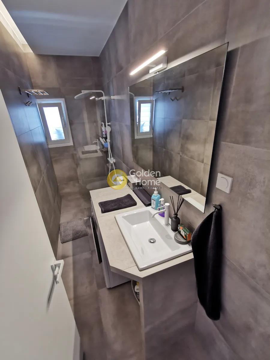 Εν λειτουργία airbnb με άριστες κριτικές. Πλήρως ανακαινισμένο μοντέρνο διαμέρισμα 64.5 τετραγωνικών με μινιμάλ στοιχεία, Με θέα ανοιχτή, την πόλη, τα βουνά και τον ουρανό, με μεγάλη βεράντα. Στη καρδιά της πόλης της Αθήνας, μια ανάσα από το μετρό Μεταξουργείου και την πλατεία Καραϊσκάκη στα 100 μέτρα αλλά και την πλατεία Ομονοίας στα 300 μέτρα. Ανερχόμενη περιοχή ξανά αφού η περιοχή διαρκώς αναβαθμίζεται ποικιλοτρόπως, μεγάλα εμπορικά καταστήματα κολοσσοί και ξενοδοχειακές μονάδες, καθώς και επιχειρήσεις εγκαθίστανται και που ολοένα προσελκύει το ενδιαφέρων επενδυτών από Ελλάδα και εξωτερικό. Το διαμέρισμα αποτελείται από δύο υπνοδωμάτια που έχουν φυσικό φως και εξαερισμό με μπαλκονόπορτες και άμεση πρόσβαση στη βεράντα. Οι λευκές ματ λάκα ντουλάπες με προσκέφαλα κρεβατιού είναι εντοιχιζόμενες, όπως επίσης και η εντοιχιζόμενη κουζίνα στην ίδια τεχνοτροπία ξύλου, λάκα λευκή όλη με μια ακόμη ευρύχωρη ντουλάπα αποθήκευσης στον χώρο της σαλοκουζίνας. Το ένα εκ των δύο υπνοδωματίων μάστερ εξυπηρετείται από δικό του μπάνιο. Το δεύτερο κυρίως μπάνιο έχει άμεση πρόσβαση από όλους τους χώρους. Θερμοπρόσοψη έχει τοποθετηθεί στη πρόσοψη του διαμερίσματος με 10 ντάουν. Σε όλους τους χώρους υπάρχει κλιματισμός αλλά και σώματα για τη θέρμανση καθώς έχει γίνει και πρόβλεψη με ήδη υπάρχουσες αναμονές για εγκατάσταση εξωτερικής μονάδας θέρμανσης της επιλογής σας. Δάπεδα γρανιτοπλακάκι. Μαγνητική κλειδαριά εισόδου ή/και με κωδικό. Νέες ηλεκτρολογικές/ υδραυλικές παροχές.
