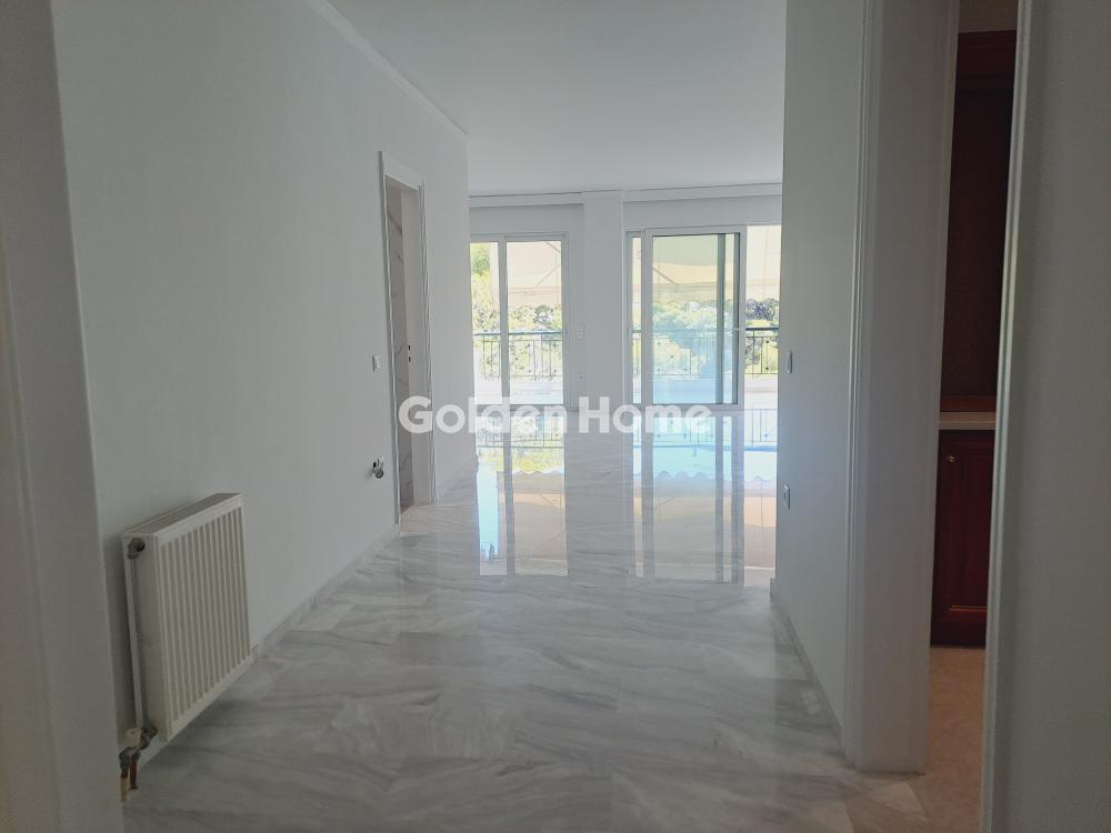 Πωλείται φωτεινό και διαμπερές διαμέρισμα 107 τ.μ. σε κτίριο 5 ορόφων, ολικά ανακαινισμένο, με μοντέρνα αισθητική και εξαιρετικά χαρακτηριστικά. Ένα πραγματικά εξαιρετικό ακίνητο για απαιτητικούς αγοραστές που αναζητούν άνεση, ποιότητα και ηρεμία σε μία από τις πιο πράσινες και ήσυχες περιοχές, μπροστά σε πάρκο, κοντά σε αγορά και συγκοινωνίες (λεωφορεία) Τα Χαρακτηριστικά του Ακινήτου είναι: 2 υπνοδωμάτια με μπαλκόνι, 1 Μπάνιο & 1 WC – μεγάλα, με παράθυρο & ντουζιέρα, Μεγάλο ενιαίο σαλόνι – τραπεζαρία, φωτεινό και μοντέρνο, Ανεξάρτητη κουζίνα με πάσο & εντοιχισμένες συσκευές (καινούργιες), Μπαλκόνια & βεράντες 18 τ.μ. με όμορφη θέα σε πάρκο, Αποθήκη 4 τ.μ., 1 θέση parking, Όμορφο κοινόχρηστο κήπο. Το διαμέριασμα διαθέτει δάπεδα από μάρμαρο, πλακάκι & δρύ, Κουφώματα αλουμινίου, Αυτόνομη θέρμανση με καυστήρα πετρελαίου, Τζάκι, Ηλιακό θερμοσίφωνα, Ηλεκτρικές τέντες σε σαλόνι & υπνοδωμάτια, Συναγερμός με κάμερες, Θυροτηλεόραση, Πόρτα ασφαλείας και Τριφασικό ρεύμα. Το διαμέρισμα είναι κατάλληλο για μόνιμη ή εξοχική κατοικία και τα κατοικίδια είναι δεκτά.
