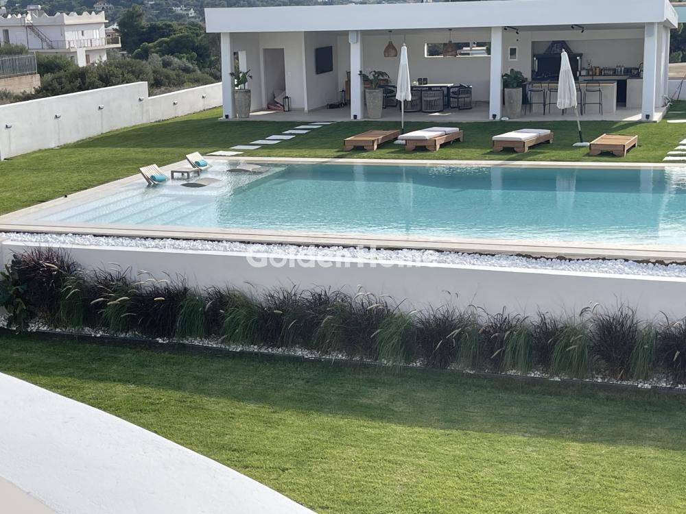 Σε προνομιακό, αμφιθεατρικό οικόπεδο 8,5 στρεμμάτων — από τα ελάχιστα μοναδικά της περιοχής — αναπτύσσεται ακίνητο εξαιρετικής αισθητικής και υψηλών προδιαγραφών, που συνδυάζει άνεση, απόλυτη ιδιωτικότητα και διακριτική πολυτέλεια. Οι εκτεταμένοι εξωτερικοί χώροι έχουν σχεδιαστεί για exclusive φιλοξενία και ιδιωτικές δεξιώσεις, περιλαμβάνοντας εντυπωσιακή πισίνα 7 × 14 μ., μεγάλο σκεπαστό χώρο BBQ με πέργκολα και ανεξάρτητο μπάνιο, καθώς και ειδικά διαμορφωμένο χώρο ελικοδρομίου. Το κεντρικό τετραώροφο κτήριο συνολικής επιφάνειας 1.000 τ.μ. προσφέρει εξαιρετική ευελιξία διαμόρφωσης, με ευρύχωρους ενιαίους χώρους διαβίωσης, επίπεδα ιδανικά για ψυχαγωγία και συγκεντρώσεις, καθώς και ορόφους υπό κατασκευή που δίνουν τη δυνατότητα πλήρους εξατομίκευσης σύμφωνα με τις ανάγκες και το όραμα του νέου ιδιοκτήτη, ενώ η σοφίτα με εμφανή στέγη υψηλής αισθητικής προσθέτει μοναδική αίσθηση ζεστασιάς και πολυτέλειας. Το ακίνητο συμπληρώνεται από ανεξάρτητο βοηθητικό κτήριο 86 τ.μ. με δύο υπνοδωμάτια και ημιτελές τριώροφο κτήριο 600 τ.μ., προσφέροντας σημαντικές δυνατότητες περαιτέρω ανάπτυξης, καθιστώντας το μια σπάνια πρόταση που απευθύνεται σε αγοραστές υψηλού επιπέδου, ιδανική τόσο για exclusive ιδιωτική κατοικία όσο και για επενδυτική αξιοποίηση στον τομέα της luxury φιλοξενίας.