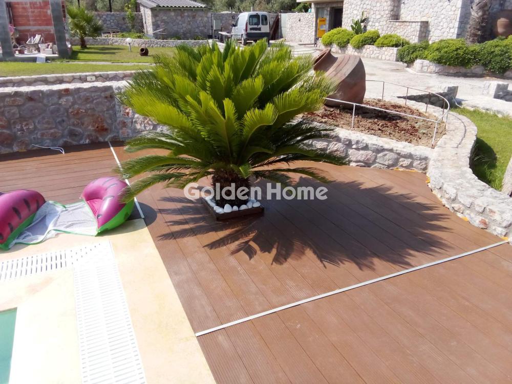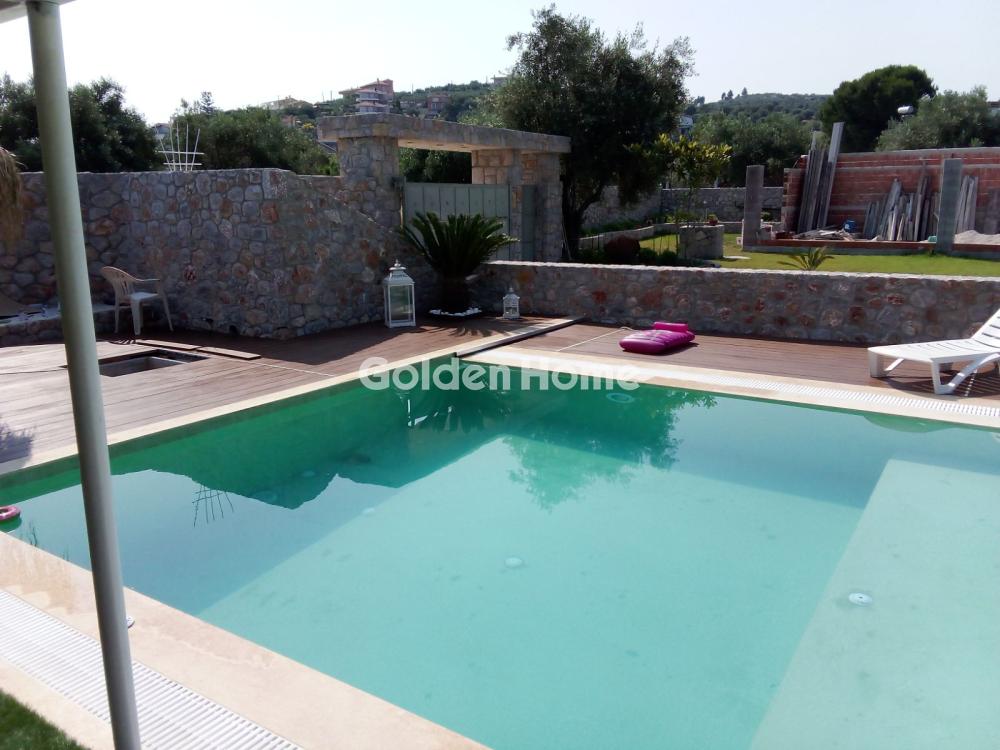 Πωλείται πολυτελής μονοκατοικία δύο επιπέδων, συνολικής επιφάνειας 150 τ.μ., κατασκευής 2015, εντός οικοπέδου 1.700 τ.μ., με επιπλέον αυτόνομο ξενώνα 60 τ.μ. Η κύρια κατοικία περιλαμβάνει τρία ευρύχωρα υπνοδωμάτια, ένα μεγάλο μπάνιο 20 τ.μ., WC, άνετο καθιστικό με τζάκι, πλήρως εξοπλισμένη μοντέρνα κουζίνα, τρία άνετα μπαλκόνια και δύο ευρύχωρες βεράντες με απεριόριστη θέα στο πράσινο. Διαθέτει αυτόνομη θέρμανση, γεώτρηση, φωτοβολταϊκά πάνελ και σύστημα ενεργειακής αυτονομίας για οικονομική και βιώσιμη διαβίωση. Ο ξενώνας των 60 τ.μ. είναι αυτόνομος και περιλαμβάνει υπνοδωμάτιο, κουζίνα και μπάνιο, ιδανικός για φιλοξενία. Η κατοικία περιβάλλεται από ελαιώνες και βρίσκεται μόλις 600 μέτρα από τη θάλασσα, προσφέροντας μοναδική ιδιωτικότητα, ηρεμία και φυσική ομορφιά. Ο εξωτερικός χώρος περιλαμβάνει μεγάλη πισίνα 40 τ.μ., μπάρμπεκιου, γκαράζ δύο θέσεων, τρεις αποθήκες και ένα πλήρως εξοπλισμένο γυμναστήριο 60 τ.μ. Ο κήπος είναι διαμορφωμένος με πέτρινα καλντερίμια και καλλωπιστικά φυτά. Το ακίνητο πωλείται πλήρως επιπλωμένο και είναι έτοιμο προς κατοίκηση, ιδανικό για μόνιμη ή εξοχική χρήση.