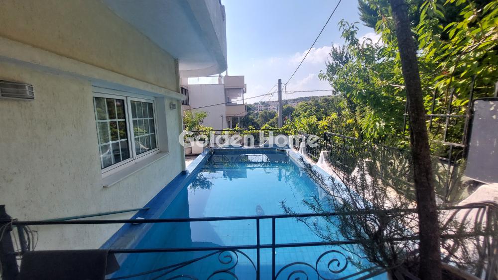 Προς πώληση μονοκατοικία στη Νέα Πεντέλη. Κεντρική είσοδος από τα σκαλιά του παράδρομου, σύμφωνα με τους τίτλους σαν ισόγειο. Δεύτερη είσοδος από τον κεντρικό δρόμο, πρακτικά ισόγειο (τυπικά υπόγειο στους τίτλους). Μονοκατοικία 630τμ, τεσσάρων επιπέδων, σε οικόπεδο 425τμ με αυλή περιμετρικά περίπου 170τμ. Α. Υπόγειο 288τμ (στο επίπεδο του κεντρικού δρόμου) αποτελείται από: 1. διαμορφωμένο ανεξάρτητο διαμέρισμα προσόψεως (τακτοποιημένο) στο τέλος ολικής ανακαίνισης, 101 τμ, με σαλοτραπεζαρία, κουζίνα με παράθυρο, 2 υπνοδωμάτια και 2 μπάνια. Είσοδος από την αυλή στην πρόσοψη. Υπάρχει δυνατότητα πλήρους ανεξαρτητοποίησης του από την υπόλοιπη μονοκατοικία. 2. αδιαμόρφωτο χώρο-διαμέρισμα 133 τμ με αρκετά χωρίσματα που χρησιμοποιείται σαν αποθήκη. Επικοινωνεί μέσω εσωτερικής σκάλας με τον 1ο όροφο, δίοδος που έχει κλειστεί και μέσω της αυλής με σκαλάκια με τα διαμερίσματα του ισογείου. 3. πάρκιν 45 τμ με γκαραζόπορτα 4. αποθήκη-κελάρι 9τμ Β. Ισόγειο (είσοδος από τα σκαλιά στον παράδρομο) 171τμ κάποτε ενιαίο, αποτελείται από: 1. μεζονέτα τριών επιπέδων, α. 120τμ το επίπεδο ισογείου με μεγάλη σαλοτραπεζαρία, ανεξάρτητη κουζίνα με παράθυρο και μπαλκόνι και WC, β. 126τμ το επίπεδο 1ου ορόφου με 5 υπνοδωμάτια (τα δύο master και σε μορφή loft και το ένα με χρήση γραφείου) και επιπλέον 3 μπάνια (συνολικά 5) και γ. 32τμ σοφίτα με γυμναστήριο και WC. 2. ανεξάρτητο διαμέρισμα 51τμ που έχει δική του είσοδο από την πίσω αυλή, με σαλόνι με τζάκι, ανεξάρτητη κουζίνα με παράθυρο, 1 υπνοδωμάτιο, μπάνιο και χώρο διαμορφωμένο σε μικρό παιδικό υπνοδωμάτιο. ----- Ενδοδαπέδια θέρμανση με αντλία ψύξης-θέρμανσης και καυστήρα πετρελαίου. Στον κεντρικό δρόμο ακριβώς απέξω περνάει φυσικό αέριο. Δάπεδα πλακάκι παντού εκτός από υπνοδωμάτια με laminate.
