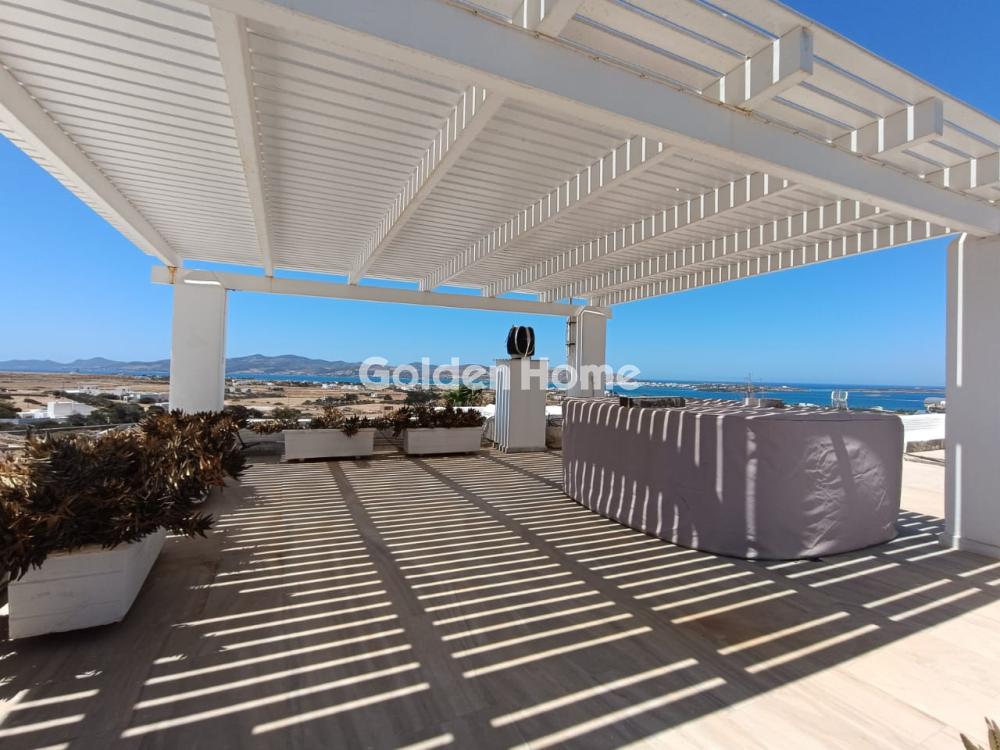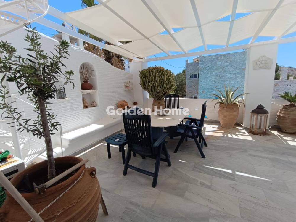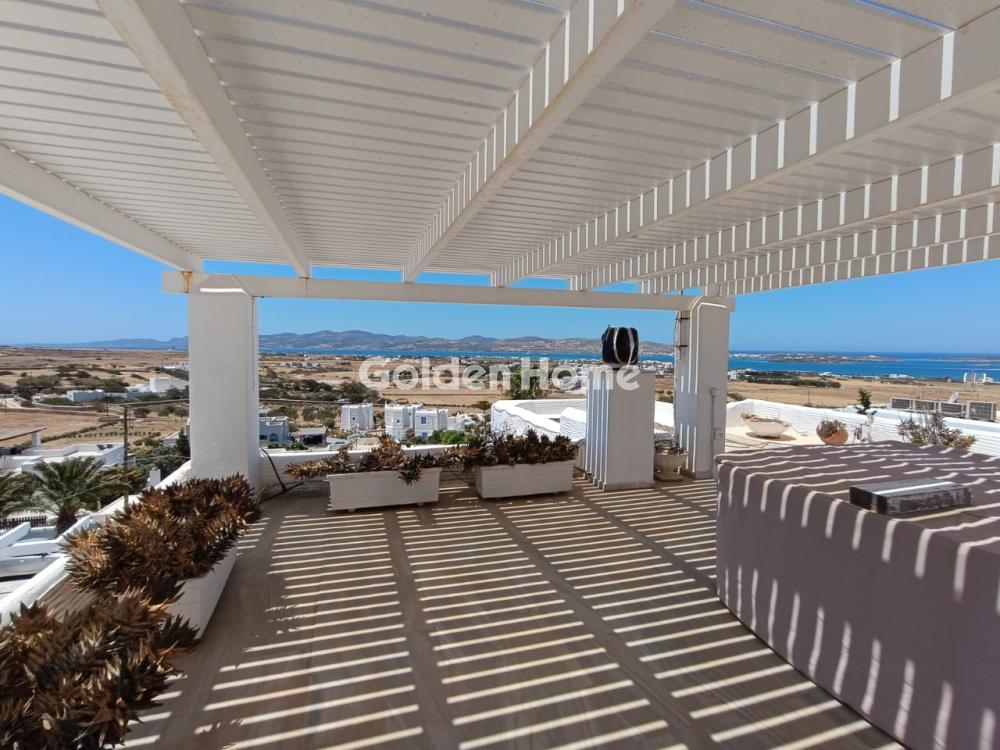 Εξαιρετικό διαμέρισμα 111 τ.μ. προς πώληση στα Γλυσίδια, στην δυτική ακτή της Πάρου, με πανοραμική θέα προς την Αντίπαρο και το ηλιοβασίλεμα. Βρίσκεται σε προνομιακό σημείο, στην κορυφή του μικρού οικισμού, στον πρώτο όροφο διώροφης κατοικίας και έχει αποκλειστική χρήση οικοπέδου 200 τ.μ., αλλά και της ταράτσας, όπου η θέα είναι πραγματικά ανεπανάληπτη. Το φυσικό φως κυριαρχεί στους μεγάλους εσωτερικούς χώρους. Ένα μεγάλο καθιστικό, με ενιαία κουζίνα και θέα στην θάλασσα, δύο υπνοδωμάτια, το ένα με δικό του μπάνιο και ένα ακόμα κοινόχρηστο μπάνιο απαρτίζουν τον κύριο χώρο του διαμερίσματος. Εξωτερικά, η μεγάλη βεράντα του καθιστικού, με πέργκολα, δίνει την δυνατότητα να απολαμβάνετε όλες τις δραστηριότητες εδώ! Υπαίθριο καθιστικό και τραπεζαρία σε σκιά όλη την ημέρα, ενώ το βράδυ τα μαγευτικά φώτα της Αντιπάρου το βράδυ δίνουν μια αίσθηση κοσμοπολίτικη, χωρίς ενοχλητικούς θορύβους. Οι αισθήσεις μαγεύονται ακόμα περισσότερο στην ταράτσα, όπου μας οδηγεί εξωτερική σκάλα από την βεράντα. Δύο ξεχωριστά καθιστικά κάτω από πέργκολες σας δίνουν την δυνατότητα να επιλέξετε θεωρείο προς την απόλυτη θέα! Στο διαμέρισμα ανήκουν επίσης μια μεγάλη αποθήκη στο ισόγειο και μια υπαίθρια θέση στάθμευσης. Επενδύστε στην απόλαυση!