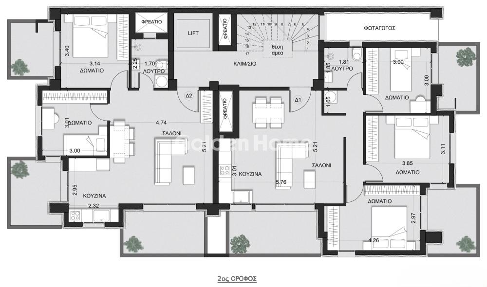 | Μπαλκόνια : | Στα Υ/Δ, Στο Σαλόνι |