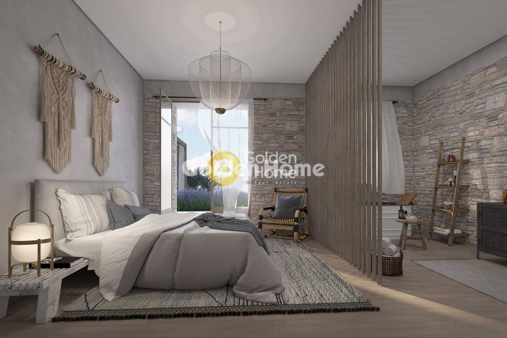 Πολυτελές συγκ΄ρότημα 5 παραδοσιακών μεζονετών σε οικόπεδο 6 στρεμάτων με ελιές με απεριόριστη θέα σε βουνό και θάλασσα. Το συγκρότημα διαθέτει κομψούς κοινόχρηστους χώρους για εκδηλώσεις, θερμαινόμενη πισίνα 21 μέτρων και κατάστρωμα ηλιοθεραπείας, παιδική χαρά & χώρους στάθμευσης. Με μεγάλη προσοχή στην ποιότητα, την άνεση και την κομψότητα, ενώ πληρούν τα υψηλότερα πρότυπα σχεδιασμού, κατασκευής και υλικών, τα σπίτια είναι όμορφα σχεδιασμένα, επιπλωμένα και προσεκτικά εξοπλισμένα. Το εσωτερικό περιλαμβάνει πόρτες ασφαλείας, ξύλινα κουφώματα και παράθυρα με διπλά τζάμια. Κάθε βίλα έχει εξωτερικό τζακούζι με εκπληκτική θέα στη θάλασσα. Κάθε μεζονέτα αποτελείται από ισόγειο 41,8μ²: οροφή καθιστικού διπλού ύψους με εκτεθειμένα στελέχη στέγης, θέα στη θάλασσα, παράθυρα, εργονομική κουζίνα και τουαλέτα. 1ος όροφος 41,8μ²: 2 Y/Δ master και μια έξοδος προς τους ιδιωτικούς χώρους του σπιτιού. Σοφίτα 20,35μ²: ένα μεγάλο υπνοδωμάτιο με ιδιωτικό μπάνιο, με θέα στο σαλόνι.