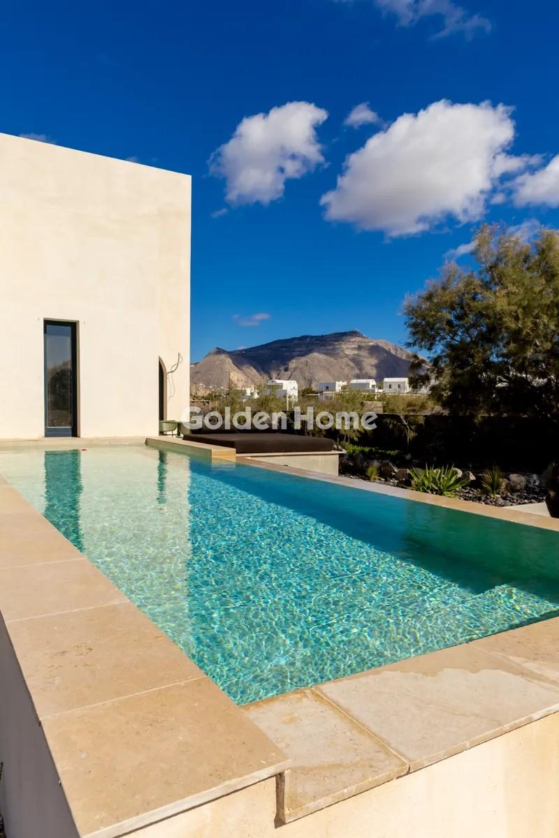 Σαντορίνη Εξωμύτης πολυτελής παραθαλάσσια μονοκατοικία 180τμ, με άριστη ποιότητα κατασκευής, σε μεγάλο εμβαδόν οικοπέδου 1800τμ, με μεγάλη υπερυψωμένη πισίνα μέσα σε έναν καταπράσινο κήπο, αποτελείται από 3 επίπεδα, υπερυψωμένο ισόγειο με μεγάλο ενιαίο χώρο σαλόνι-κουζίνας, 2 Υ/Δ και 2 μπάνια, υπόγεια ιδιωτική κάβα και αυτόνομη γκαρσονιέρα με μπάνιο στην ταράτσα του κτιρίου με πρόσβαση από εξωτερική σκάλα, έχει άμεση πρόσβαση στην παραλία, ιδανική επιλογή για όσους αναζητούν υψηλή αισθητική και ιδιωτικότητα.