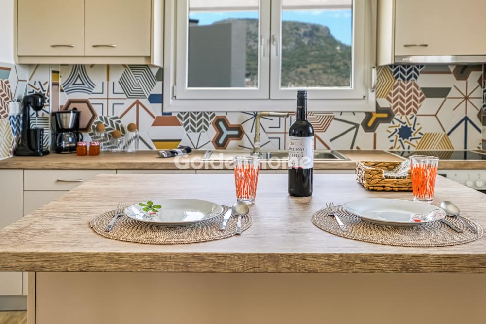 Ενοικιάζεται διαμέρισμα στην Άρια Ναυπλίου, σε απόσταση 2 χλμ. από το κέντρο της πόλης, με ανεμπόδιστη θέα προς τη θάλασσα, το Παλαμήδι και το Μπούρτζι. Το ακίνητο έχει συνολικό εμβαδόν 80 τ.μ. μαζί με τον εξωτερικό χώρο. Διαθέτει δύο υπνοδωμάτια με διπλά κρεβάτια, ευρύχωρο καθιστικό με καναπέ-κρεβάτι, πλήρως εξοπλισμένη κουζίνα και μπάνιο με ντουζιέρα, ενώ η μεγάλη ιδιωτική βεράντα προσφέρει πανοραμική θέα στη θάλασσα. Περιλαμβάνει κλιματισμό (αντλίες θερμότητας), Wi-Fi, Smart TV, πλυντήριο ρούχων και πλήρως εξοπλισμένη κουζίνα. Βρίσκεται σε ήσυχη, οικογενειακή περιοχή με δωρεάν στάθμευση στο δρόμο. Οι παραλίες της περιοχής απέχουν περίπου 11 λεπτά με αυτοκίνητο, ενώ υπάρχει εύκολη πρόσβαση σε σημαντικούς αρχαιολογικούς χώρους όπως η Επίδαυρος, οι Μυκήνες και το Παλαμήδι. Σε κοντινή απόσταση υπάρχουν φούρνοι, μίνι μάρκετ και ταβέρνες, καθώς και άμεση σύνδεση με την Παλιά Πόλη του Ναυπλίου, το Τολό, το Δρέπανο και το Βιβάρι.