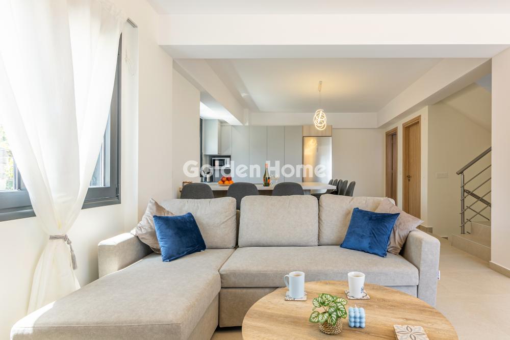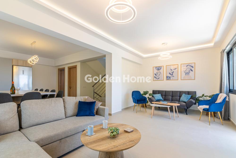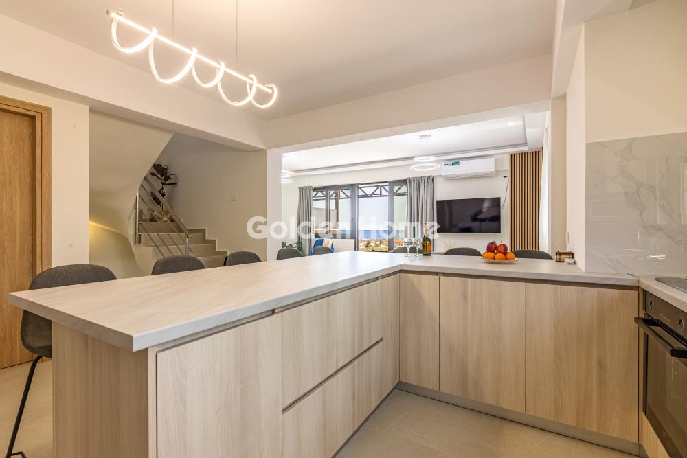 Νεόδμητη μεζονέτα 138τ.μ. στις Γούβες, σε προνομιακό σημείο μέσα στον οικισμό, που προσφέρει πανοραμική και ανεμπόδιστη θέα στη θάλασσα. Η κατοικία αναπτύσσεται σε τέσσερα επίπεδα και ξεχωρίζει για τη μοντέρνα αισθητική της. Οι κύριοι χώροι περιλαμβάνουν ευρύχωρο σαλόνι με άπλετο φως, σύγχρονη κουζίνα, τέσσερα υπνοδωμάτια, τρία μπάνια και μια μικρή αποθήκη. Διαθέτει επιπλέον ανεξάρτητο κλειστό χώρο στάθμευσης και αποθήκη συνολικής επιφάνειας 70τ.μ. Στα δύο ανώτερα επίπεδα υπάρχουν μεγάλες βεράντες που προσφέρουν μαγευτική, ανεμπόδιστη θέα στο απέραντο γαλάζιο. Η μεζονέτα είναι εξοπλισμένη με όλες τις σύγχρονες ανέσεις: ηλιακό θερμοσίφωνα, σύστημα κλιματισμού, κουφώματα αλουμινίου με σίτες, πόρτα ασφαλείας και τζακούζι για στιγμές χαλάρωσης. Διαθέτει θερμοπρόσοψη πάχους 7εκ., εξασφαλίζοντας υψηλή ενεργειακή απόδοση και άνεση όλο το χρόνο. Πωλείται πλήρως επιπλωμένη και ηλεκτρικά εξοπλισμένη, έτοιμη για άμεση εγκατάσταση. Αποτελεί ιδανική επιλογή τόσο για ιδιοκατοίκηση όσο και για τουριστική εκμετάλλευση, συνδυάζοντας ποιότητα κατασκευής, άνεση και μοναδική θέα.