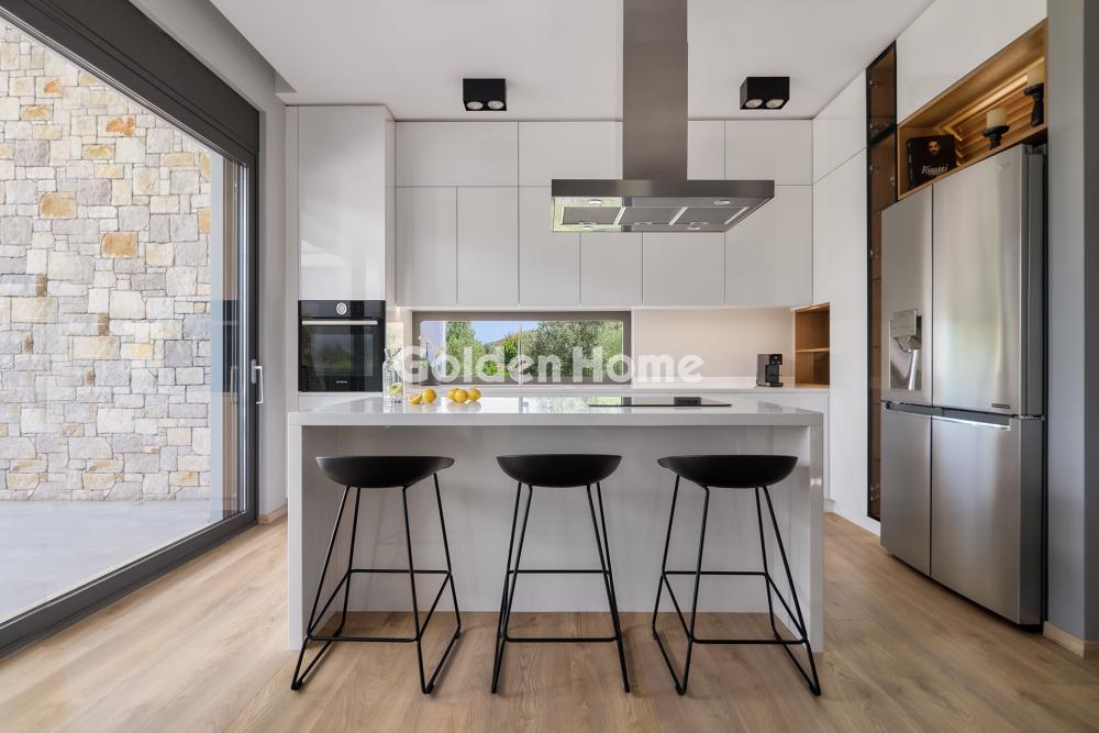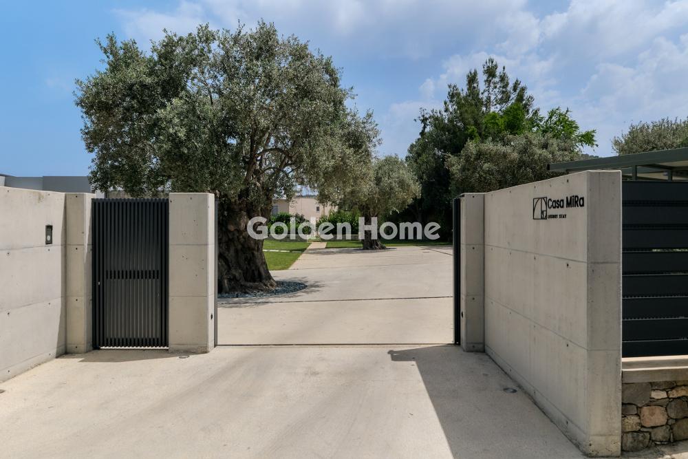 Το ακίνητο αποτελείται από μία σύγχρονη κατοικία 137 τμ. σε κτήμα έκτασης 4.006 τμ. στους Πύργους Θερμής Λέσβου . Στον περιβάλλοντα χώρο υπάρχει ανεξάρτητο μεταλλικό στέγαστρο-πέργκολα 50 τμ. Η πρόσβαση γίνεται μέσω ασφαλτοστρωμένης οδού (κάθετης στην Εθνική οδό Μυτιλήνης Θερμής) που οδηγεί στην είσοδο του ακινήτου το οποίο έχει πρόσοψη στην Εθνική οδό Μυτιλήνης Θερμής Οι διαμορφωμένοι εξωτερικοί του χώροι περιλαμβάνουν περίπου 1200 τμ γκαζόν, με αυτόματο σύστημα ποτίσματος, δάπεδα από πλακάκια υψηλής ποιότητας πέτρινα καθίσματα,πατήμα απο επεξεργαζμένο μπετό, διαθέτει γεώτρηση και η επιφάνειά του είναι επίπεδη. Υπάρχει δυνατότητα κατασκευής πισίνας. Ο χώρος της κατοικίας χωρίζεται από το υπόλοιπο κτήμα (το οποίο περιλαμβάνει 55 ελαιόδεντρα και 10 οπωροφόρα δέντρα, με αυτόματο πότισμα), με χαμηλά πέτρινα πεζούλια-καθίσματα. Η κύρια κατοικία διαμορφώνεται σε 1 επίπεδο και αποτελείται από ένα ευρύχωρο, φωτεινό και ευάερο σαλόνι με τζάκι, τραπεζαρία και μοντέρνα κουζίνα με πολυτελή και μίνιμαλ σχεδίαση. Για την κουζίνα, από λευκή λάκα, όπως άλλωστε και για το σύνολο της κατοικίας, χρησιμοποιήθηκαν κορυφαίας ποιότητας σύγχρονα υλικά, εντοιχισμένες ηλεκτρικές συσκευές BOSCH και ψυγείο ντουλάπα LG. Η κατοικία διαθέτει δύο μεγάλα υπνοδωμάτια, ένα εκ των οποίων διαθέτει dressing room, 2 μεγάλα μπάνια και μία αποθήκη με εντοιχισμένο πλυντήριο LG και ντουλάπια στους δύο τοίχους. Σε επαφή με την κατοικία υπάρχει εξωτερική αποθήκη 8 τμ. Το σύνολο της κατοικίας, πλην των λουτρών και της αποθήκης, καλύπτονται με laminate υψηλής ποιότητας και μεγάλο μέρος των εξωτερικόν όψεων καλύπτεται με πέτρα (όχι επένδυση).Τα κουφώματα της κατοικίας είναι αλουμινίου της εταιρείας SCHUCO και οι στέγες καλύπτονται με ZINC. Όπως θα αναμενόταν από μια πολυτελή ιδιοκτησία υψηλών προδιαγραφών, υπάρχει μια ολόκληρη σειρά πρόσθετων χαρακτηριστικών που μπορούν να αναλυθούν κατόπιν επίσκεψης στο ακίνητο, και περιλαμβάνουν: Αντλία θερμότητας DAIKIN με fan coils ψύξης θέρμανσης, ηλιακό συλλέκτη, θυροτηλεόραση, κεντρικό διακομιστή πολυμέσων με Wi-Fi και ενσύρματο δίκτυο. Σύστημα ασφαλείας τελευταίας τεχνολογίας που περιλαμβάνει έλεγχο πρόσβασης εξωτερικής περιμέτρου, αισθητήρες κίνησης, αισθητήρες ανοίγματος παραθύρου/θύρας ή θραύσης. Η κατασκευή της κατοικίας ολοκληρώθηκε το 2023 και είναι έτοιμη για χρήση