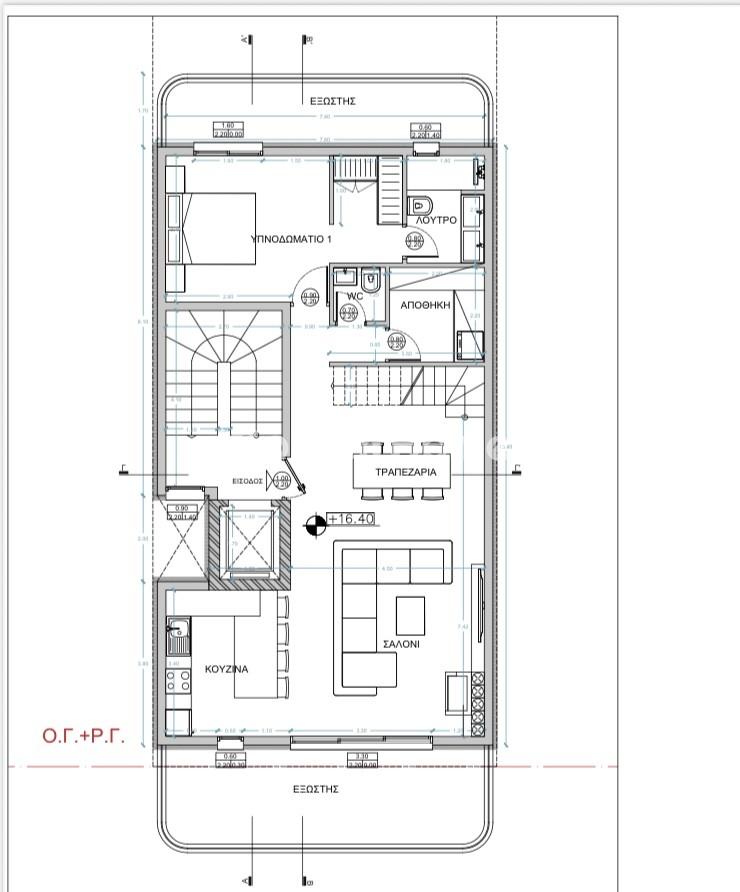 | Χρήση Επιπέδου : | Σαλόνι, Τραπεζαρία, Κουζίνα, Υ/Δ Διπλά, Μπάνιο, WC |