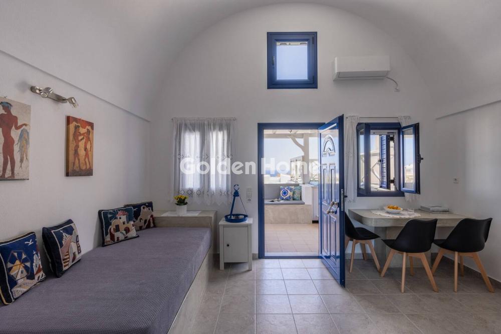 Πωλείται στον παραδοσιακό οικισμό του Εμπορειού Σαντορίνης στους πρόποδες του μεσαιωνικού κάστρου Καστέλι, αυτό το εξαιρετικό τριώροφο ακίνητο που προσφέρει μια σπάνια ευκαιρία να αποκτήσετε μια αυθεντική αλλά πλήρως εξοπλισμένη κατοικία σε ένα από τα πιο ιστορικά και ελκυστικά χωριά του νησιού. Το γωνιακό ακίνητο των 145 τ.μ., σε οικόπεδο 60 τ.μ., είναι διαμορφωμένο σε τρία πλήρως ανεξάρτητα επίπεδα και απολαμβάνει άφθονο φυσικό φως χάρη στον νοτιοανατολικό προσανατολισμό του. Με συνολική χωρητικότητα έως 10 ατόμων (3 στον επάνω όροφο, 4 στο ισόγειο, 3 στον υπόγειο όροφο), η κατοικία είναι εξίσου κατάλληλη για ιδιωτική χρήση ή και premium ενοικίαση. Κάθε επίπεδο λειτουργεί ως ένα αυτόνομο διαμέρισμα με χειροποίητα εντοιχισμένα κρεβάτια, σμιλεμένα γύψινα φινιρίσματα (πατιτά) και κομψά μπάνια κυκλαδίτικου στιλ με ντους — ένας άψογος συνδυασμός παράδοσης και σύγχρονης άνεσης. Το διαμέρισμα το 1ου ορόφου (περίπου 40 τ.μ.), έχει εντυπωσιακή θολωτή οροφή 4,7 μ., υπνοδωμάτιο σε στιλ σοφίτας και θέα στη θάλασσα απευθείας από το κρεβάτι. Η βεράντα των 19 τ.μ. επεκτείνει τον εξωτερικό χώρο με σκιασμένη πέργκολα, εντοιχισμένο καθιστικό, τραπεζαρία και θερμαινόμενο τζακούζι με θέα στο Αιγαίο, τον Προφήτη Ηλία, το Καστέλι και το παραδοσιακό οικισμό από κάτω — ένα εξαιρετικό ιδιωτικό καταφύγιο για τα βράδια του ηλιοβασιλέματος. Η κατοικία στο ισόγειο (51 τ.μ.) προσφέρει ζεστούς, παραδοσιακούς χώρους διαβίωσης και μια γοητευτική βεράντα με θέα στη θάλασσα, ενώ η κατοικία σε σπηλιά (υπόσκαφος) (54 τ.μ.) παρέχει φυσική θερμική σταθερότητα και ένα γαλήνιο, ατμοσφαιρικό καταφύγιο. Διαθέτει Wi-Fi σε όλα τα επίπεδα, έξυπνες τηλεοράσεις, πλήρως εξοπλισμένες κουζίνες, εγκαταστάσεις πλυντηρίων, κλιματισμός και είναι πλήρως επιπλωμενο. Σε κοντινή απόσταση με τα πόδια βρίσκονται το Καστέλι (100 μ.), το κέντρο του χωριού (300 μ.) και οι δωρεάν δημοτικοί χώροι στάθμευσης (150 μ.). Οι κοντινές αποστάσεις των φημισμένων παραλιών της Σαντορίνης — Περίσσα (2 χλμ.), Περίβολος (2,5 χλμ.) και Βλυχάδα (3,2 χλμ.) — ενισχύουν περαιτέρω την αξία του.