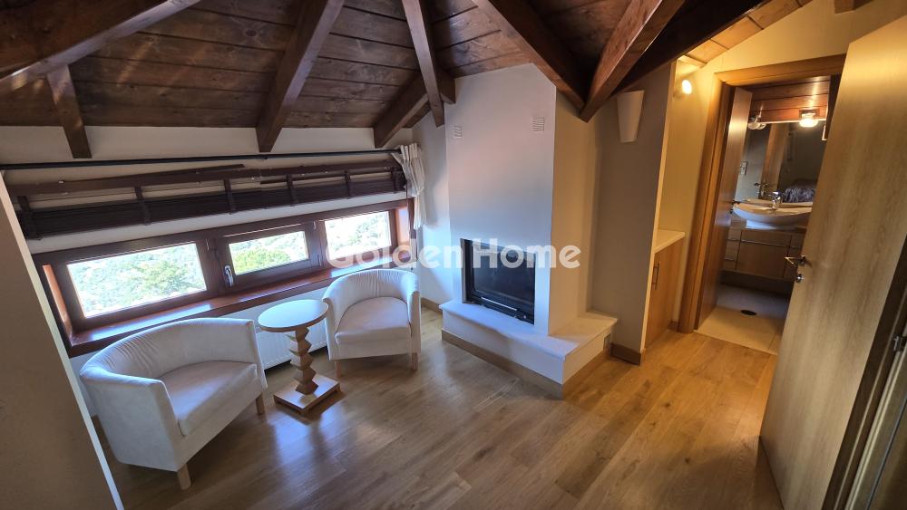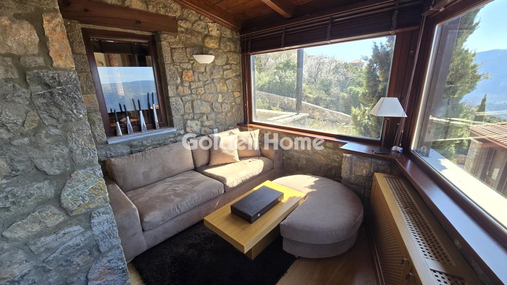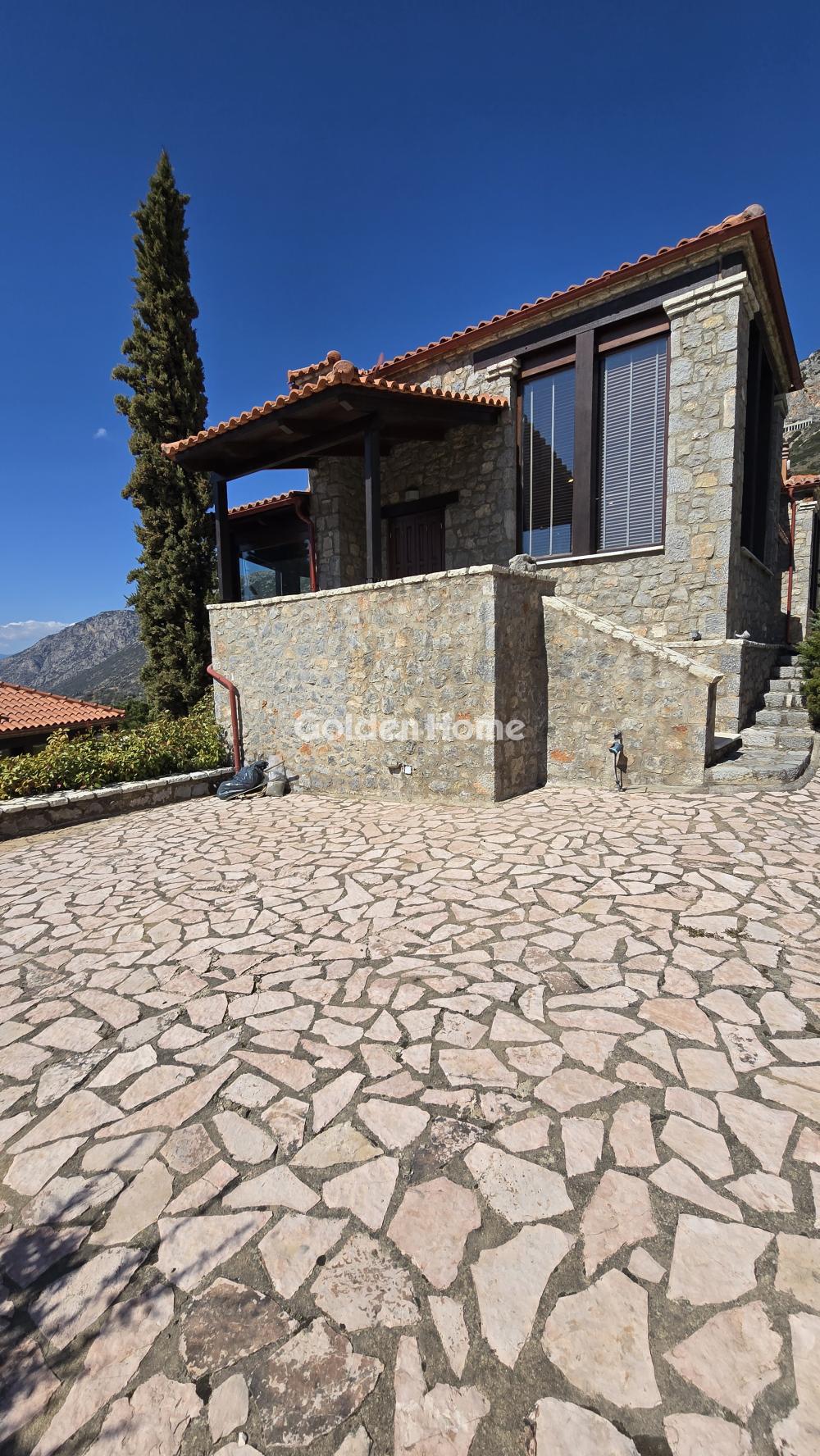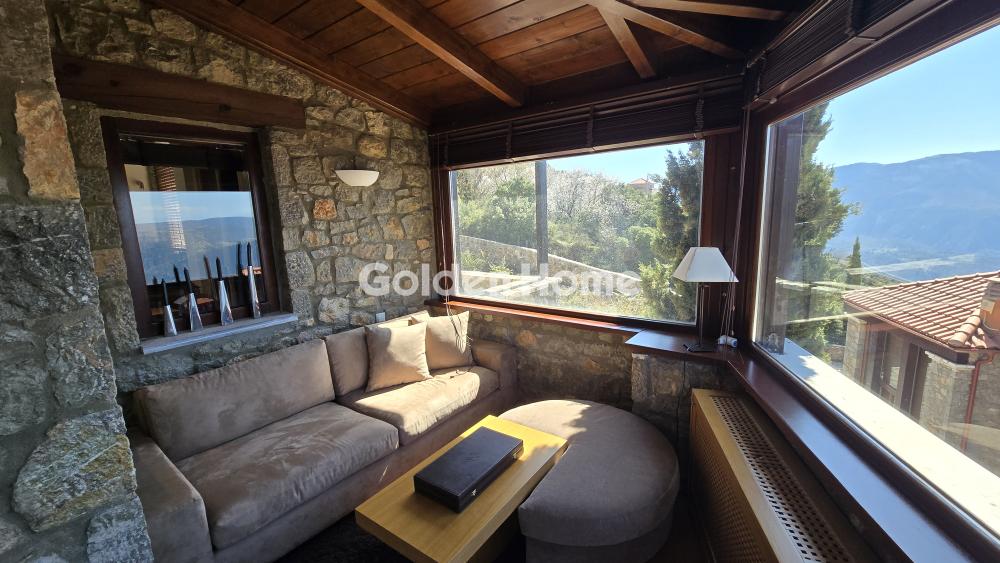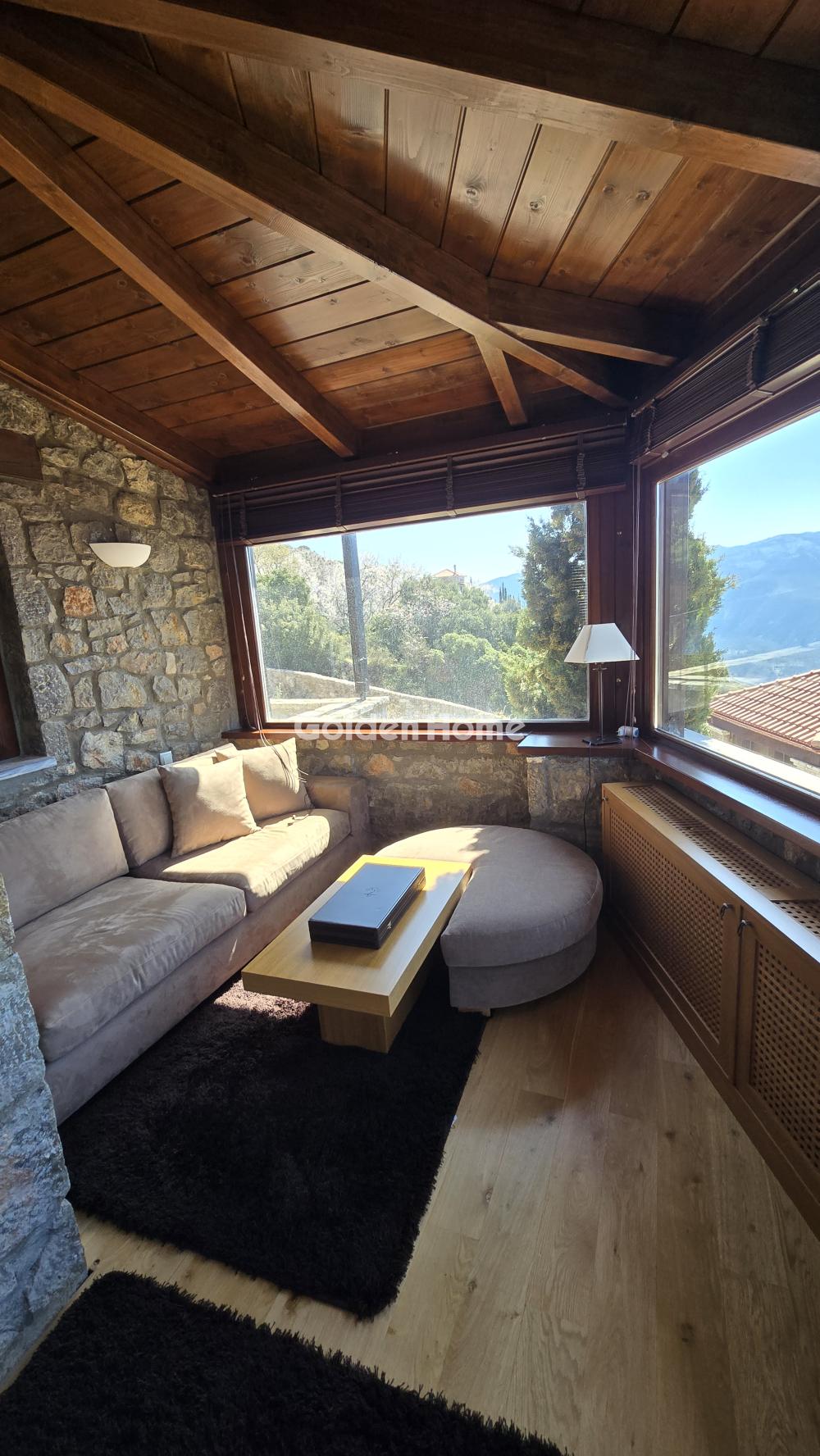 ΒΟΙΩΤΙΑ ΑΡΑΧΩΒΑ ΜΕ ΘΕΑ ΤΟ ΔΕΛΦΙΚΟ ΤΟΠΙΟ ΠΩΛΕΙΤΑΙ πολυτελής εφαπτόμενη μεζόνετα 168τμ, με 3 μάστερ υπνοδωμάτια, 3 μπάνια συνολο, 1 WC στο ισόγειο, κου΄ζίνα ενιαία με καθιστικό και σαλόνι, σ ενα απο τα καλύτερα σημεια της Αράχωβας. Το πέτρινο σαλέ βρίσκεται σε επικλινές οικόπεδο και διαιρείται σε 3 επίπεδα. Στο πάνω επίπεδο είναι η αυτόνομη σοφίτα με χώρο καθιστικού, τζάκι και δικό της μπάνιο. Με την εσωτερική σκάλα οδηγούμαστε στο επίπεδο της κουζίνας με τα μεγάλα παράθυρα και την υπέροχη θέα στον Παρνασσό. Απο το καθιστικό με το τζάκι απολαμβάνεις θέα προς το Δελφικό τοπίο! Κατεβαίνοντας στο ισόγειο ειναι τα 2 μάστερ υπνοδωμάτια με άμεση πρόσβαση στον κήπο. Στο ίδιο επίπεδο υπάρχουν βοηθητικοί χώροι αποθήκευσης. Στον περιβάλλοντα χώρο του σαλέ περιλαμβάνεται περίπου 200τμ οικόπεδο με ανεμπόδιστη θέα σε Παρνασσό και Δελφικό τοπίο. Το σαλέ βρίσκεται μόλις 5 λεπτά απόσταση με το αυτοκινήτο απο το κέντρο της Αράχωβας.