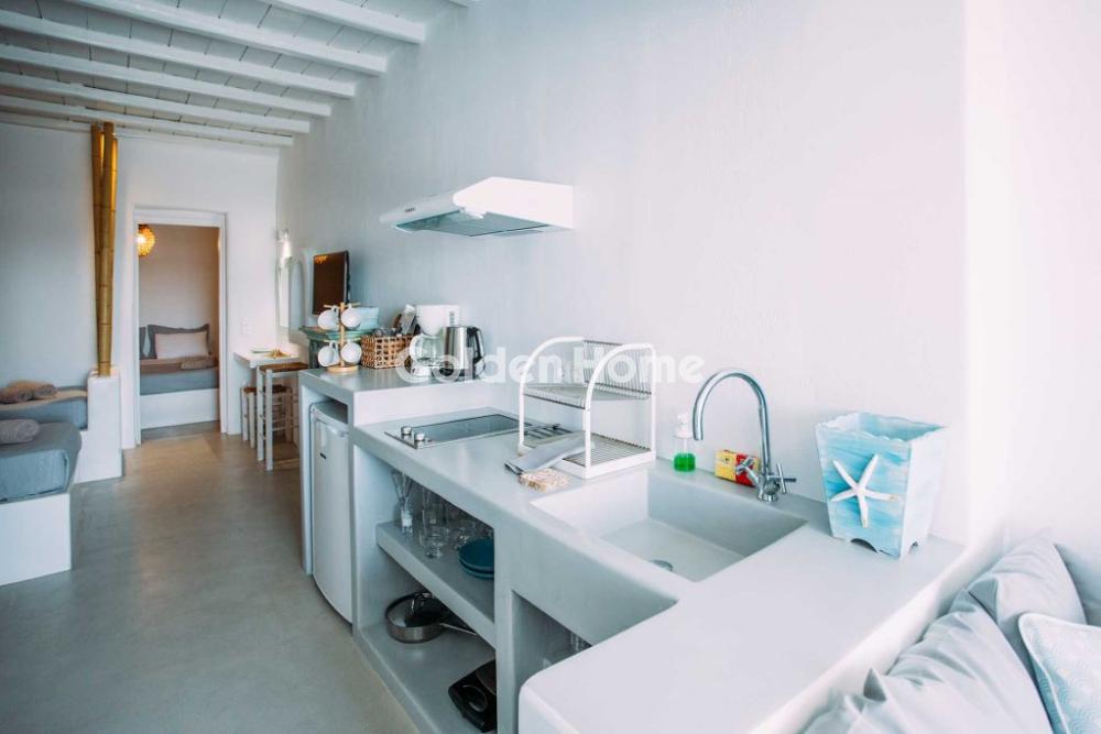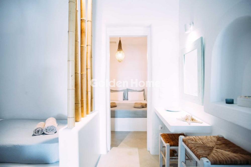 Μύκονος – Διατίθεται 4κλινη Σουίτα για Σεζόν 6 μηνών Απολαύστε ήρεμες και άνετες διακοπές σε μια εξαιρετική 4κλινη σουίτα, ιδανική για οικογένειες ή παρέες, εντός συγκροτήματος κατοικιών με κοινόχρηστη πισίνα. Η σουίτα διαθέτει ξεχωριστό υπνοδωμάτιο με διπλό εντοιχισμένο κρεβάτι queen size και έναν ανοιχτό χώρο με δύο επιπλέον κρεβάτια, ευρύχωρο σαλόνι και τραπεζαρία, καθώς και πλήρως εξοπλισμένη κουζίνα, προσφέροντας όλες τις ανέσεις για μια άνετη και χαλαρωτική διαμονή. Η διακόσμηση συνδυάζει παραδοσιακό και μοντέρνο στυλ, ενώ ο φωτεινός και καλαίσθητος χώρος με το φυσικό ελληνικό φως που διαχέεται από τα παράθυρα δημιουργεί αίσθηση ευφορίας, ηρεμίας και ευεξίας. Στον εξωτερικό χώρο υπάρχει ιδιωτική αυλή με καθιστικό, ιδανική για στιγμές χαλάρωσης και απόλαυσης της όμορφης θέας του φυσικού τοπίου της περιοχής. Η σουίτα διαθέτει όλες τις απαραίτητες ανέσεις για την άνεσή σας, όπως ψυγείο, σάντουιτς maker, ηλεκτρικό βραστήρα, καφετιέρα και μηχανή espresso, δορυφορική κεραία, επίπεδη τηλεόραση, κλιματισμό, σίδερο, ντουλάπα, σεσουάρ και σετ προσωπικής φροντίδας, ενώ παρέχεται και δωρεάν Wi-Fi για την πλήρη εξυπηρέτησή σας.