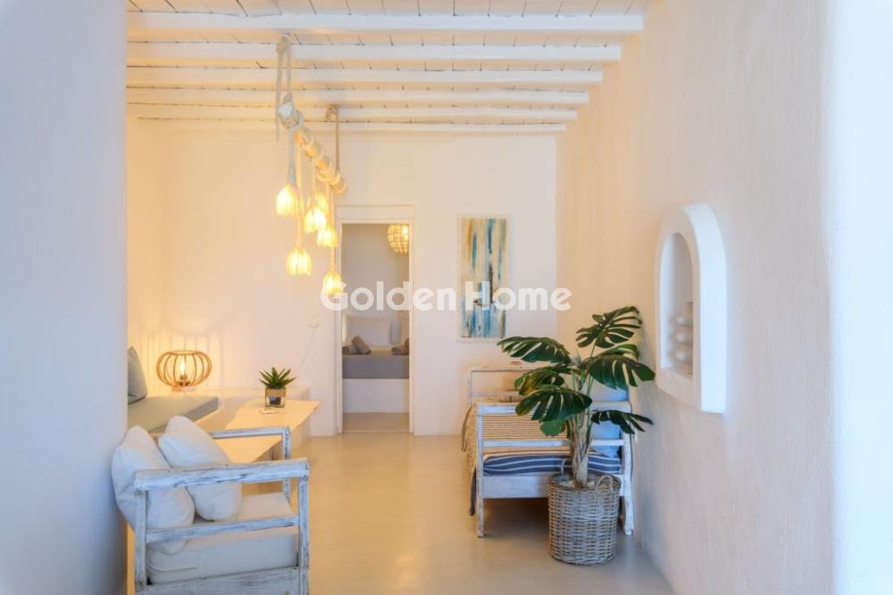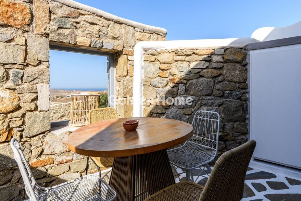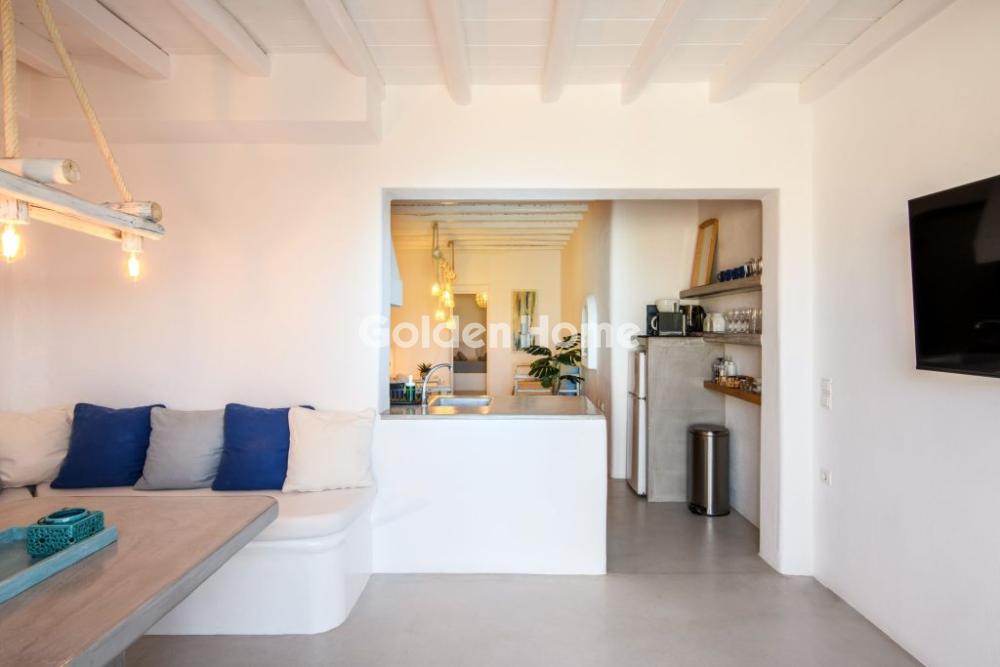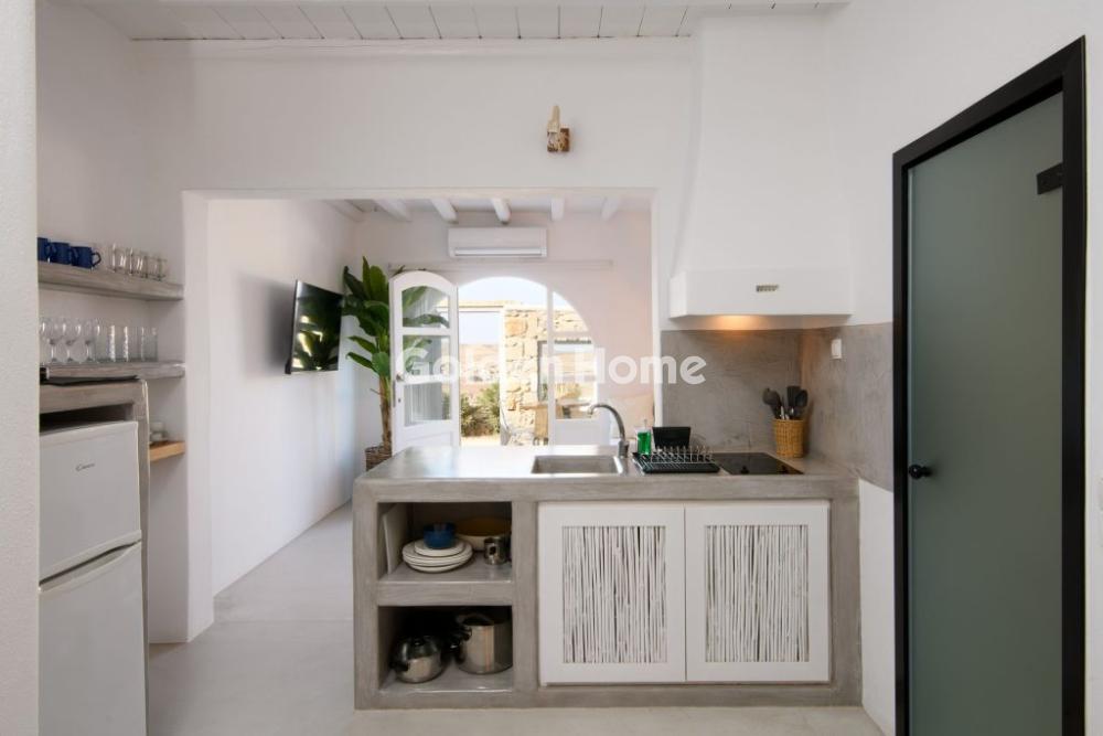Μύκονος – Διατίθεται 4κλινη Σουίτα για Σεζόν 6 Μηνών Η σουίτα ξεχωρίζει για τον επιτυχημένο συνδυασμό απλού και μοντέρνου σχεδιασμού με παραδοσιακές μυκονιάτικες λεπτομέρειες στη διακόσμηση και τα έπιπλα, με φυσικά υλικά και γήινες αποχρώσεις, δημιουργώντας έναν χώρο που αποπνέει ζεστασιά, ηρεμία και κομψότητα. Βρίσκεται στο ισόγειο του συγκροτήματος και αποτελεί ιδανική επιλογή για 2 έως 4 άτομα. Διαθέτει υπνοδωμάτιο με διπλό εντοιχισμένο κρεβάτι queen size και σαλόνι με εντοιχισμένο καναπέ που μετατρέπεται άνετα σε δύο μονά κρεβάτια, προσφέροντας ευελιξία και άνεση στη διαμονή. Στον εξωτερικό χώρο υπάρχει ιδιωτική αυλή με ιδιαίτερη αρχιτεκτονική και απεριόριστη θέα στο μοναδικό φυσικό τοπίο της Μυκόνου, καθιστώντας τη διαμονή σας ξεχωριστή. Η σουίτα είναι πλήρως εξοπλισμένη με όλες τις ανέσεις που χρειάζεται ο επισκέπτης κατά τη διάρκεια των διακοπών του, όπως ψυγείο, σάντουιτς maker, ηλεκτρικό βραστήρα, καφετιέρα και μηχανή espresso, δορυφορική κεραία, επίπεδη τηλεόραση, κλιματισμό, σίδερο, ντουλάπα, σεσουάρ και σετ προσωπικής φροντίδας, ενώ παρέχεται και δωρεάν Wi-Fi για απόλυτη εξυπηρέτηση και άνεση.
