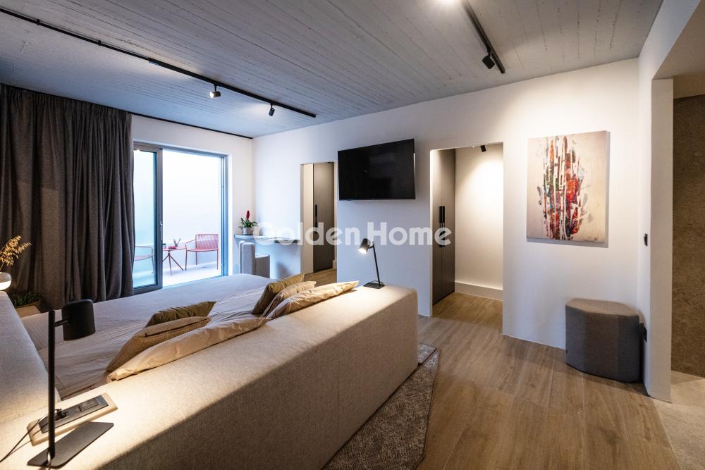 Πωλείται νεόδμητο διαμέρισμα δευτέρου ορόφου επιφάνειας 152 τετραγωνικών μέτρων στην περιοχή Δικαστικά Μαραθώνα δίπλα στη θάλασσα με απεριόριστη θέα. Το ακίνητο διακρίνεται για τη μοντέρνα σχεδίαση και την υψηλή ποιότητα των υλικών του, διαθέτοντας τρία υπνοδωμάτια, το καθένα εκ των οποίων είναι master με δικό του μπάνιο και ντουζιέρα. Οι εσωτερικοί χώροι περιλαμβάνουν επίσης σαλόνι, τραπεζαρία, κουζίνα, laundry room και επιπλέον wc, αποτελώντας επιλογή κατάλληλη για εξοχική κατοικία. Το διαμέρισμα πλαισιώνεται από βεράντες επιφάνειας 64 τετραγωνικών μέτρων και περιλαμβάνει πισίνα τύπου lap pool. Η κάτοψη προβλέπει κύρια είσοδο καθώς και ξεχωριστή είσοδο ιδιοκτητών, ενώ το ακίνητο διαθέτει αποθήκη, μηχανοστάσιο και θέση στάθμευσης με άμεση πρόσβαση στο εσωτερικό μέσω ανελκυστήρα. Η τοποθεσία στα Δικαστικά αποτελεί ένα από τα πιο προνομιακά σημεία της Αττικής, προσφέροντας έναν συνδυασμό απότομης ακτογραμμής με καταγάλανα νερά και άμεση γειτνίαση με το πευκοδάσος του Σχοινιά. Η συγκεκριμένη θέση εξασφαλίζει οπτική επαφή με το θαλάσσιο μέτωπο από τους κύριους χώρους διημέρευσης και τις εξωτερικές επιφάνειες.