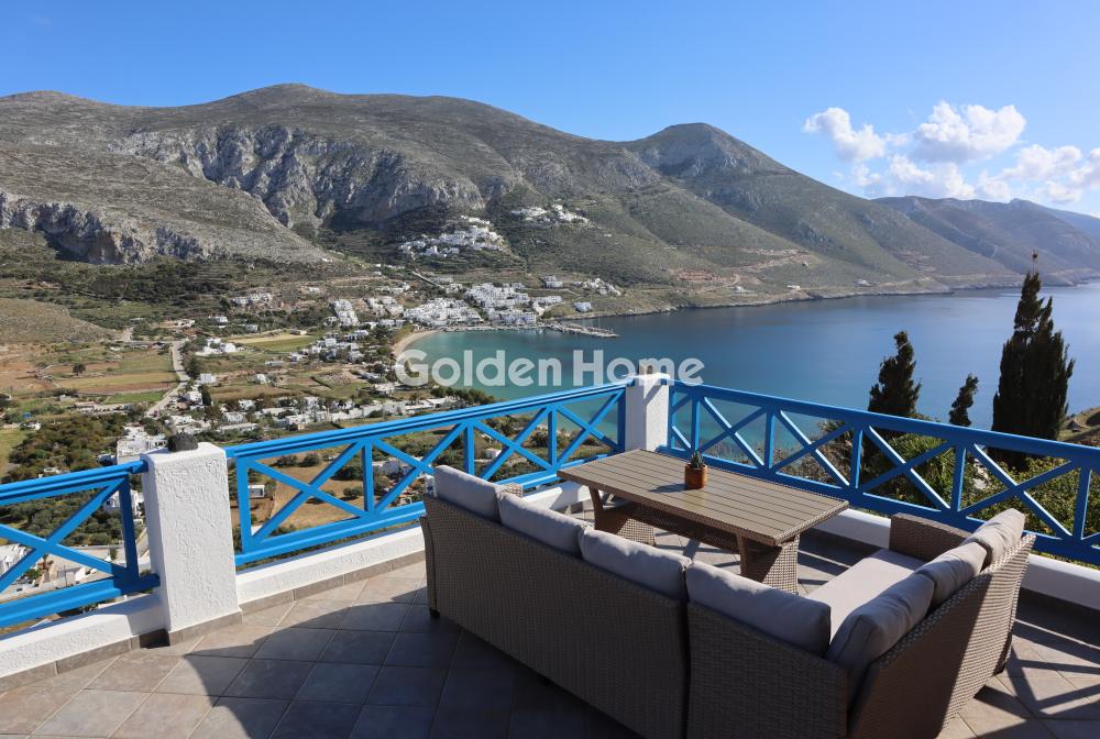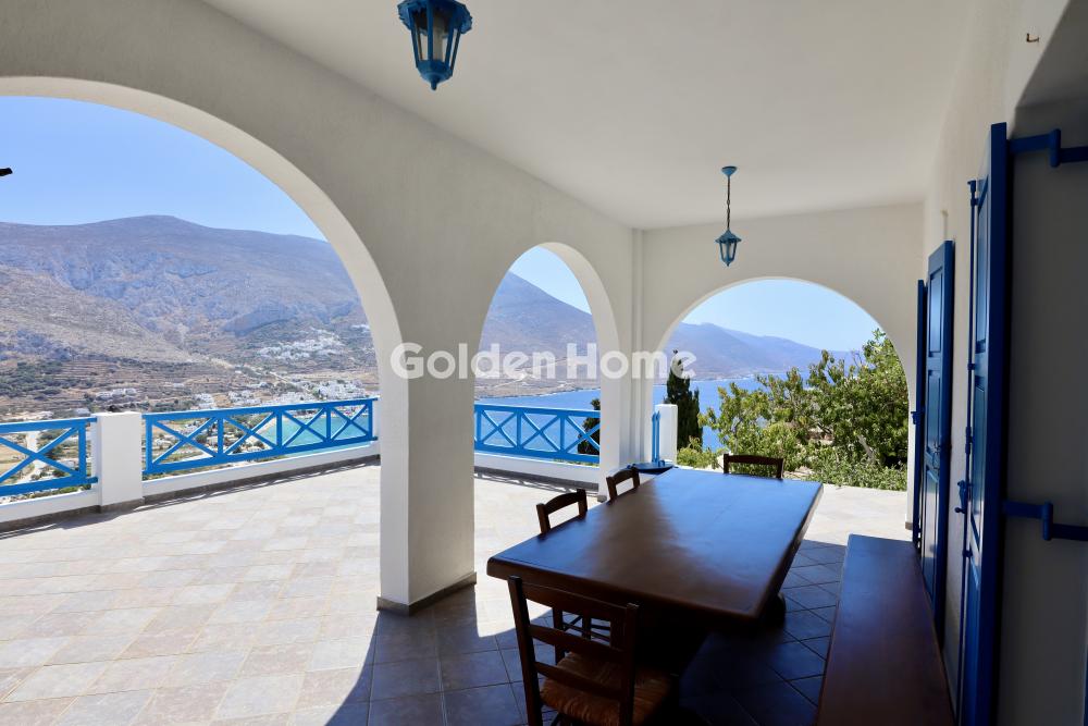 Μοναδικό ακίνητο τεσσάρων επιπέδων στην Αμοργό, με προνομιακή θέα στο Αιγαίο και τα επιβλητικά βουνά περιμετρικά του κόλπου της Αιγιάλης. Προσφέρεται τόσο για εκείνους που ονειρεύονται να αποκτήσουν μια παραδοσιακή νησιώτικη βίλα, όσο και για την υλοποίηση επένδυσης στον τομέα της φιλοξενίας δεδομένου ότι το οικόπεδο παραμένει άρτιο και οικοδομήσιμο. Σε απόσταση μόλις δεκαπέντε λεπτών με τα πόδια από το γραφικό χωριό των Θολαρίων, με τις παραδοσιακές ταβέρνες και τα καλντερίμια του, η τοποθεσία επιτυγχάνει αβίαστα μια ισορροπία μεταξύ ηρεμίας και προσβασιμότητας. Έχει δοθεί ιδιαίτερη προσοχή στην προετοιμασία των διαμορφωμένων κήπων, εκατέρωθεν του κτιρίου, και των υπαίθριων χώρων διαβίωσης, με πληθώρα καρποφόρων δέντρων και μικρό αμπέλι. Με τους πέτρινους τοίχους, τις ευρύχωρες βεράντες και τις χτιστές παγκάδες της, η βίλα προσφέρει μια εμπειρία ζωής σε έναν παράδεισο που περιβάλλεται από φυσική ομορφιά και γαλήνη.
