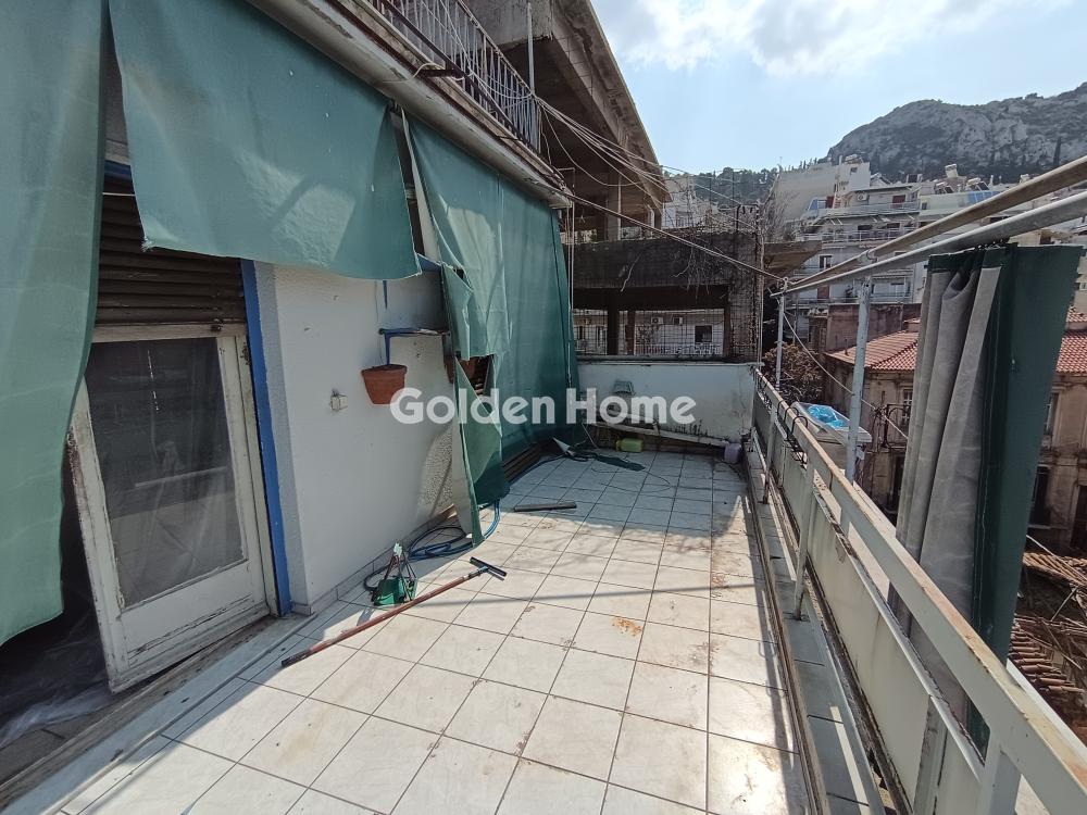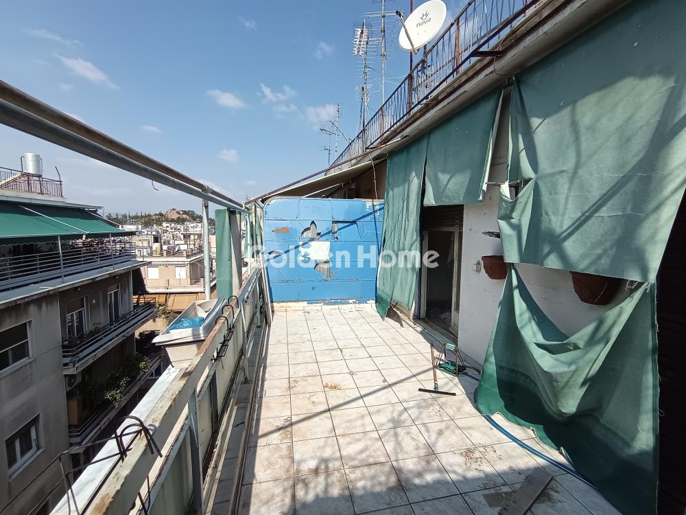 Διαμπερές ρετιρέ πέμπτου ορόφου 92 τ.μ., με δύο μεγάλα υπνοδωμάτια, μεγάλο ενιαίο χώρο σαλόνι τραπεζαρία, μπάνιο, wc, αποθηκευτικό χώρο και μεγάλη βεράντα (περίπου 20 τ.μ.) και εκπληκτική θέα στο λόφο του Λυκαβηττού και στο λόφο του Στρέφη. Το διαμέρισμα διαθέτει και ηλιακό θερμοσίφωνα προσφάτως αλλαγμένο. Πολυκατοικία σε εξαιρετική κατάσταση, κεντρική θέρμανση φυσικό αέριο. Χρήζει ανακαίνισης. Κατάλληλο και για γραφείο λόγω τοποθεσίας.