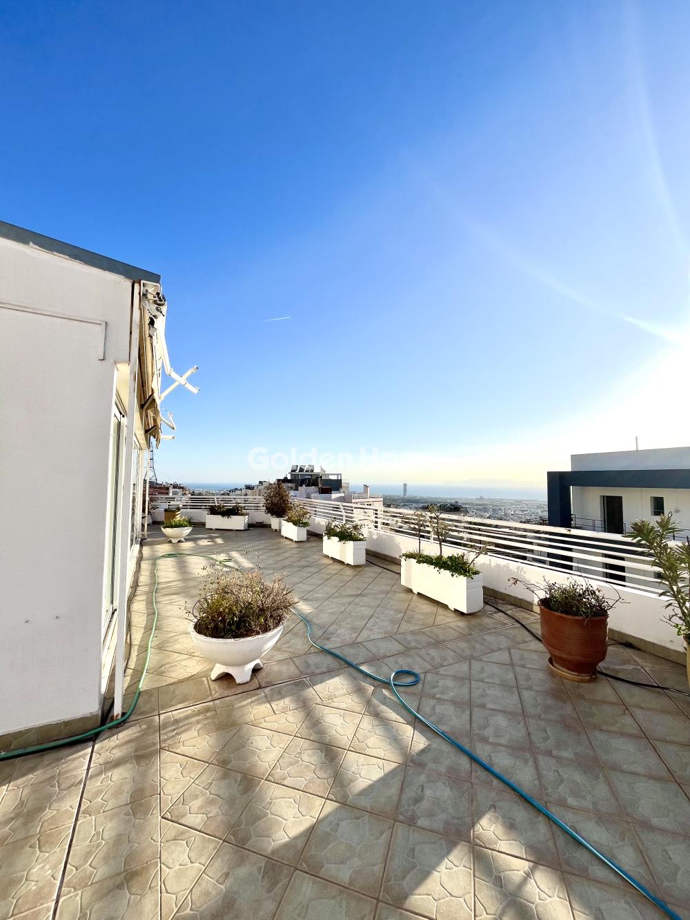 Εξαιρετικό οροφοδιαμέρισμα ρετιρέ στον 4ο όροφο, με μεγάλη περιμετρική βεράντα και ανοιχτή θέα. Το διαμέρισμα διαθέτει ενιαίο χώρο σαλονιού και κουζίνας, μεγάλες μπαλκονόπορτες που προσφέρουν άπλετο φυσικό φως. Διαθέτει επισης κεντρική μονάδα κλιματισμού που καλύπτει όλους τους χώρους, μία θέση στάθμευσης, αποθήκη εντός του διαμερίσματος καθώς και επιπλέον αποθήκη 8 τ.μ