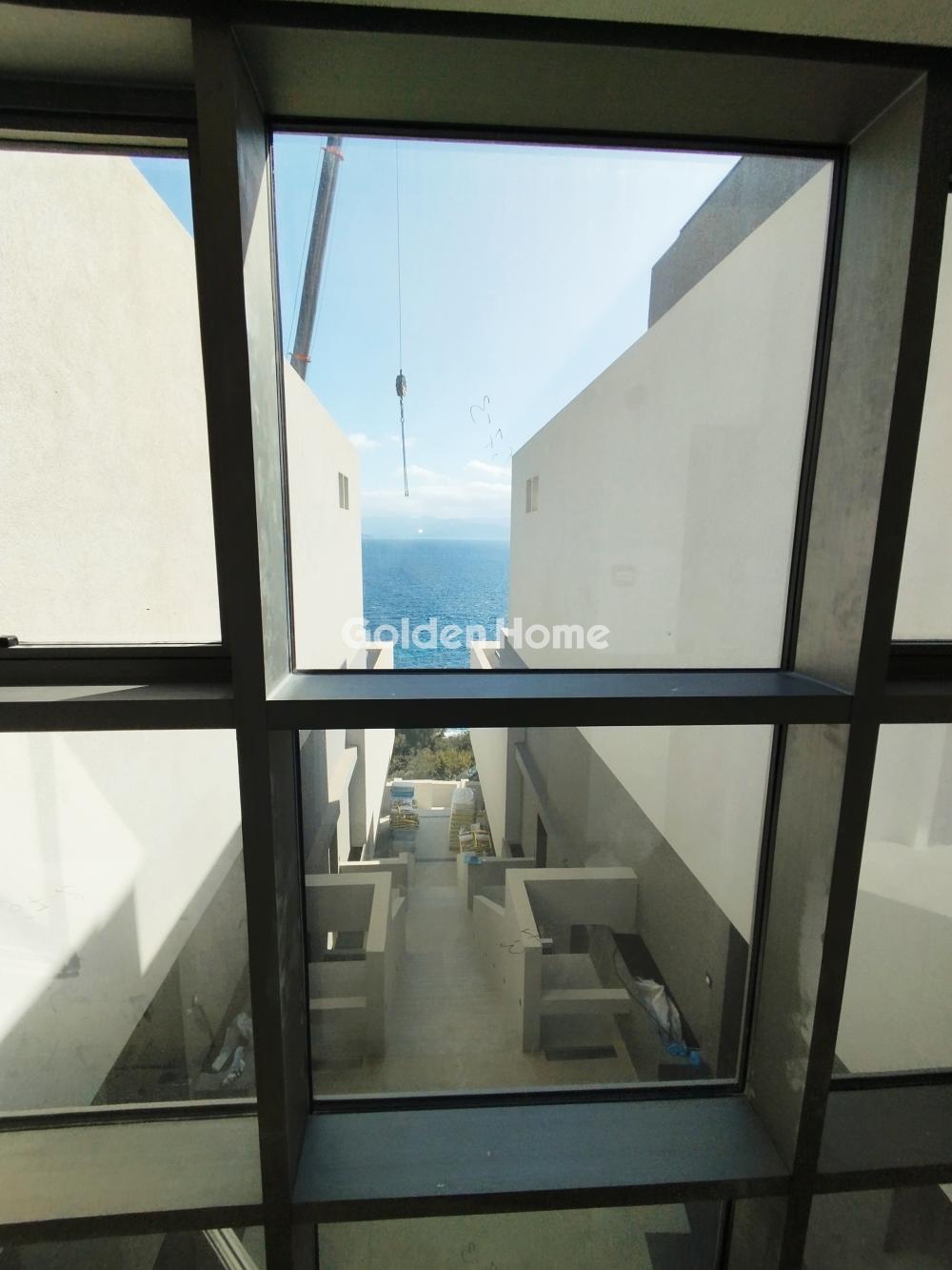 Πωλείται νεόδμητη μεζονέτα τρίτου και τετάρτου ορόφου συνολικής επιφάνειας 135 τετραγωνικών μέτρων στην περιοχή Δικαστικά Μαραθώνα δίπλα στη θάλασσα με απεριόριστη θέα. Το ακίνητο διακρίνεται για τη μοντέρνα σχεδίαση και την υψηλή ποιότητα των υλικών του, διαθέτοντας τρία υπνοδωμάτια, τρία μπάνια και ένα wc, αποτελώντας επιλογή κατάλληλη για εξοχική κατοικία. Οι εσωτερικοί χώροι αναπτύσσονται σε δύο επίπεδα που επικοινωνούν με εσωτερική σκάλα. Το κάτω επίπεδο περιλαμβάνει δύο υπνοδωμάτια και καθιστικό, ενώ το πάνω επίπεδο διαθέτει τον κύριο χώρο διημέρευσης με σαλόνι, τραπεζαρία, κουζίνα, ηλιακό αίθριο (solar atrium) και το τρίτο υπνοδωμάτιο. Η κατοικία πλαισιώνεται από βεράντες συνολικής επιφάνειας 138 τετραγωνικών μέτρων και περιλαμβάνει πισίνα τύπου lap pool καθώς και κήπο. Η κάτοψη προβλέπει κύρια είσοδο καθώς και δευτερεύουσα είσοδο ιδιοκτητών, ενώ το ακίνητο διαθέτει αποθήκη, μηχανοστάσιο και θέση στάθμευσης με άμεση πρόσβαση στο εσωτερικό μέσω ανελκυστήρα. Η τοποθεσία στα Δικαστικά αποτελεί ένα από τα πιο προνομιακά σημεία της Αττικής, προσφέροντας έναν συνδυασμό απότομης ακτογραμμής με καταγάλανα νερά και άμεση γειτνίαση με το πευκοδάσος του Σχοινιά.