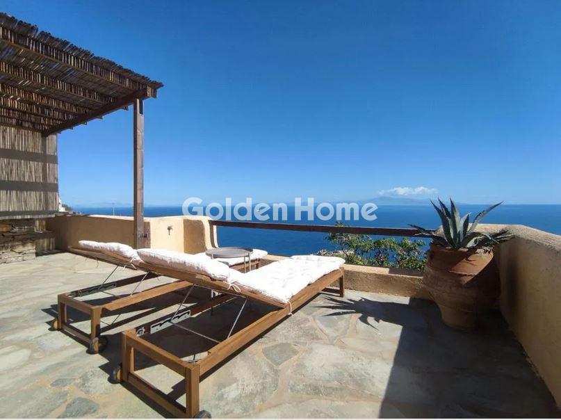 ΚΕΑ ΚΑΛΑΜΟΣ στο βόρειο τμήμα του νησιού, πωλείται μονοκατοικία 137 τ.μ. με απεριόριστη και ανεμπόδιστη θέα στη θάλασσα σε οικόπεδο 4.700 τ.μ. Η μονοκατοικία είναι σε 2 επίπεδα και αποτελείται από 2 ανεξάρτητα διαμερίσματα με δική τους είσοδο το καθένα. Αναλυτικά, στο πρώτο επίπεδο, η κατοικία είναι 82 τ.μ. και περιλαμβάνει μεγάλη σκεπαστή βεράντα με πέργκολα, βόρειος προσανατολισμος με θέα στο απέραντο γαλάζιο της θάλασσας, σαλόνι με καναπέ-κρεβάτι και τζάκι, ανοιχτή κουζίνα με τραπεζαρία και σαλόνι, 2 άνετα υπνοδωμάτια με ανεμιστήρες οροφής, το ένα εκ των οποίων έχει διπλό κρεβάτι και το άλλο υπνοδωμάτιο έχει 2 μονά κρεβάτια, μπάνιο με μπανιέρα και 1 wc. Στο δεύτερο επίπεδο, η κατοικία είναι 55 τ.μ. και περιλαμβάνει μεγάλη βεράντα με νότιο προσανατολισμό, σαλόνι με καναπέ-κρεβάτι, ανοιχτή κουζίνα με τραπεζαρία και σαλόνι, 1 υπνοδωμάτιο με διπλό κρεβάτι ή 2 μονά κρεβάτια, κουζίνα και 1 μπάνιο. Υπάρχει επίσης αποθήκη και δεξαμενή νερού 15 κυβικών μέτρων και μεγάλο πάρκινγκ εντός του οικοπέδου για 4 έως 5 αυτοκίνητα. Υπάρχει επίσης χώρος για κατασκευή πισίνας για όσους το επιθυμούν και υπάρχει η δυνατότητα δόμησης επιπλέον 80 τ.μ. Χρήζει μερικής ανακαίνισης. Συνολικά, πρόκειται για μια αξιόλογη κατοικία, διαμπερής , φωτεινή, κατάλληλη για εξοχική κατοικία με ανεξάρτητο χώρο φιλοξενίας, καθώς και για τουριστική επένδυση. Ιδανική για λάτρεις που επιθυμούν ηρεμία, ιδιωτικότητα, άνεση χώρου και αυθεντική κυκλαδίτικη φύση. Βρίσκεται κοντά στο λιμάνι, σε εστιατόρια, καφετέριες, καταστήματα και κοντά στη νυχτερινή ζωή του νησιού. Απόσταση από το λιμάνι 16 λεπτά, από την παραλία του Οτζιά 6 λεπτά, από την πόλη της Ιουλίδας 19 λεπτά και 20 λεπτά από την περίφημη παραλία Σπαθί.
