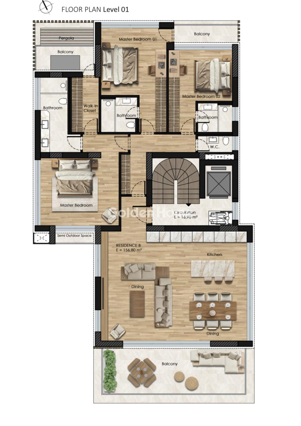 | Χρήση Επιπέδου : | Σαλόνι, Τραπεζαρία, Καθιστικό, Κουζίνα, Υ/Δ Master, WC, Πόρτα Ασφαλείας, Οροφοδιαμέρισμα |